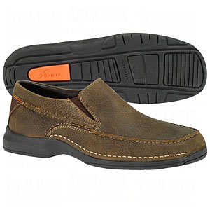 The Bale Slip-on, part of the F-Sport line from Florsheim, is a contemporary shoe for casual wear. It features uppers constructed of a tumbled leather with suede, or an oily nubuck with suede upper and is available in black, brown, or tan. The upper is moccasin style with side-goring for an easy fit. Other features include a full-length Ortholite footbed, leather linings and sock lining, and a flexible rubber bottom.